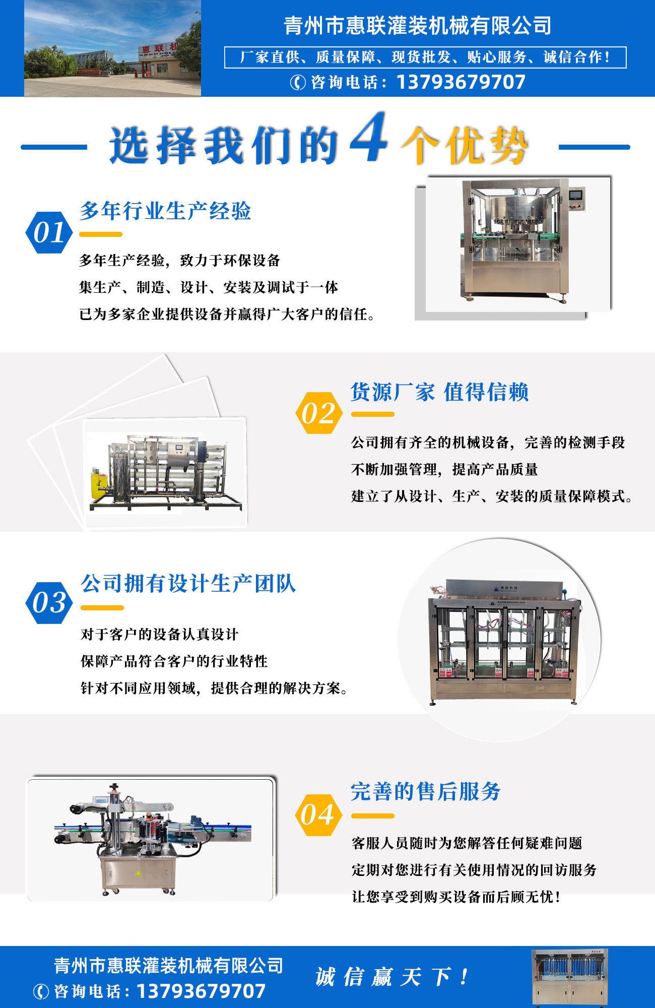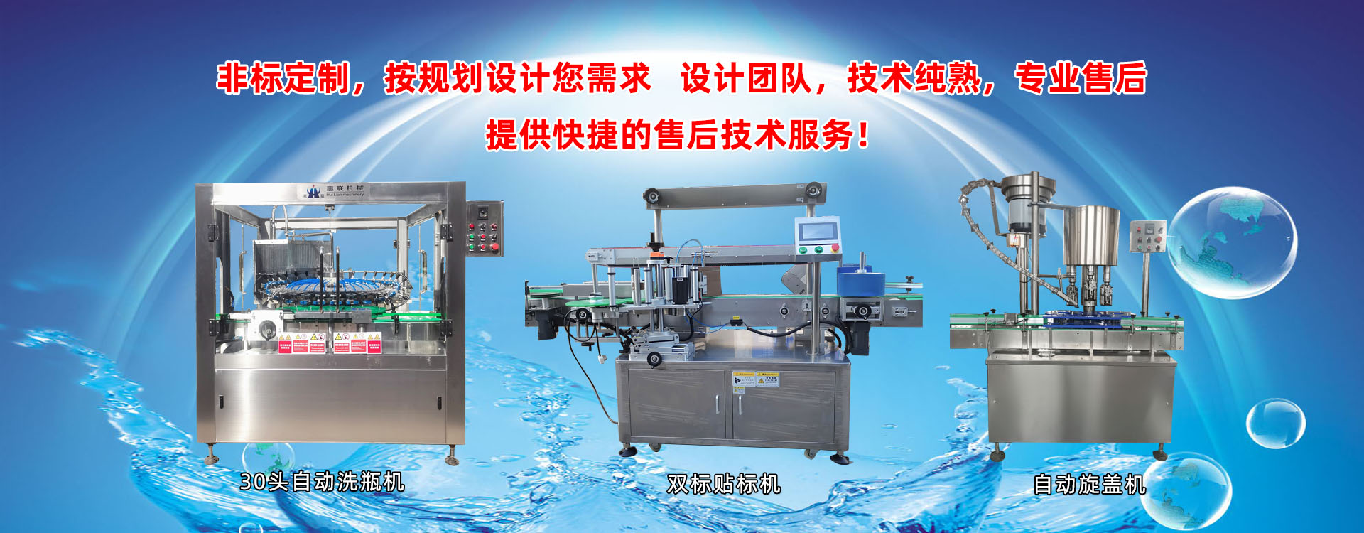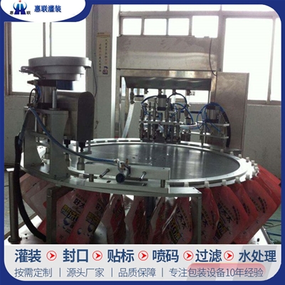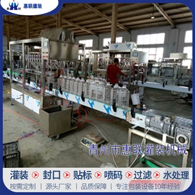 青州市惠聯(lián)灌裝機(jī)械有限公司是一家集生產(chǎn)研發(fā)、銷售、服務(wù)于一體的液體灌裝成套設(shè)備生產(chǎn)企業(yè),可根據(jù)廠家要求設(shè)計(jì)合理液體灌裝生產(chǎn)線,為用戶提供技術(shù)咨詢、設(shè)計(jì)工藝、場(chǎng)區(qū)平面布置、工藝改造、設(shè)備安裝調(diào)試等完善服務(wù)。 公司生產(chǎn)制造各種類型液體灌裝機(jī)、過(guò)濾機(jī),水處理設(shè)備及液體灌裝成套設(shè)備。主要產(chǎn)品有:白酒、葡萄酒、黃酒等酒水灌裝機(jī)、食用油、機(jī)油、潤(rùn)滑油等油類灌裝機(jī)、醬油醋、老抽、生抽等調(diào)味品灌裝機(jī)、防凍液、玻璃水灌裝機(jī)、酒精、84消毒液灌裝機(jī)、車用尿素灌裝機(jī)、口服液灌裝機(jī)、洗滌劑灌裝機(jī)等多種液體、膏體灌裝設(shè)備,全自動(dòng)/半自動(dòng)灌裝機(jī)型號(hào)多,規(guī)格全,洗瓶機(jī)、瓶子封口機(jī)、打塞機(jī)、熱縮機(jī)、瓶子烘干機(jī)、貼標(biāo)機(jī)、噴碼機(jī)、輸送線、裝箱機(jī)、水處理設(shè)備等全套生產(chǎn)線相關(guān)配套設(shè)備齊全,自產(chǎn)自銷,一站式購(gòu)齊,售后無(wú)憂。